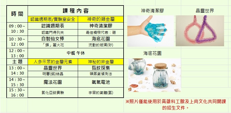 | 化學實驗課~元素週期表 -- 僅 1 梯 (報名達25人始開課) (取消) |