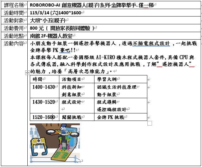 | ROBOROBO-AI創意機器人(親子)系列-金牌拳擊手 -- 僅1梯 |