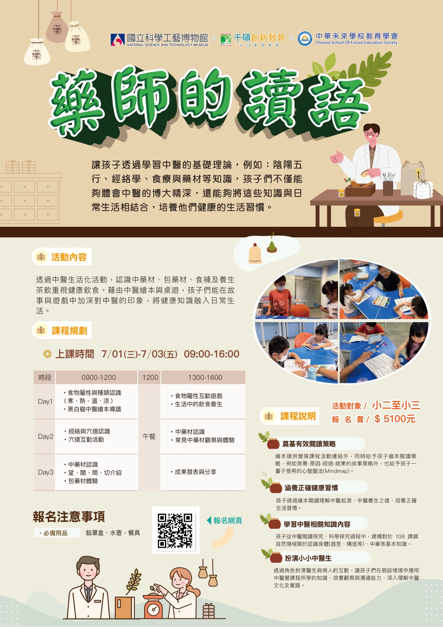 一、網路報名:網址https://serv.nstm.gov.tw。登入本館會員後,進行報名。(請使用參加學員資料進行報名,勿使用家長資料) 二、服務電話:07-3800089分機5137〈週二至週日9:00-12:00,13:30-16:30〉 三、繳費方式(逾期未繳費者,本館將逕行取消該筆預約): 1.線上刷卡。 2.ATM轉帳(會員作業/付款作業/郵局ATM轉帳繳費/線上取得16碼銷帳編號進行轉帳)。 3.郵局臨櫃劃撥繳費(劃撥帳戶:42135709國立科學工藝博物館),並請於「通訊欄」註明參加活動名稱、活動日期、參加學員(恕不接受線上轉帳至劃撥帳號,將導致無法對帳)。 4.親至本館以現金繳費。 四、本館已完成建立學習歷程檔案系統,登入會員後可直接連結導入,自行產出研習證明電子檔。為資料正確性,請務必使用參加學員本人資料進行報名(請勿使用家長資料),以免影響學員權益。 五、報名系統提供一帳號新增多學員功能。登入會員後,可於「修改密碼及會、學員資料」中,進行新增學員,並於報名時進行學員切換,方便家長為小朋友進行活動報名(亦即家長註冊一個帳號後,可在該帳號底下新增多位小朋友,並切換報名)。 |