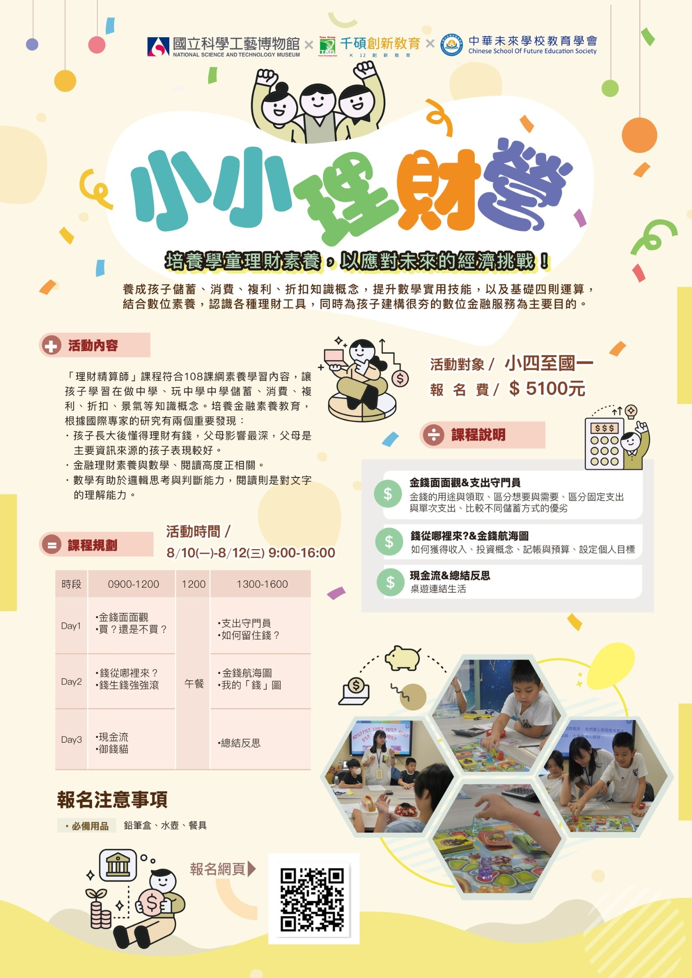 一、網路報名:網址https://serv.nstm.gov.tw。登入本館會員後,進行報名。(請使用參加學員資料進行報名,勿使用家長資料) 二、服務電話:07-3800089分機5137〈週二至週日9:00-12:00,13:30-16:30〉 三、繳費方式(逾期未繳費者,本館將逕行取消該筆預約): 1.線上刷卡。 2.ATM轉帳(會員作業/付款作業/郵局ATM轉帳繳費/線上取得16碼銷帳編號進行轉帳)。 3.郵局臨櫃劃撥繳費(劃撥帳戶:42135709國立科學工藝博物館),並請於「通訊欄」註明參加活動名稱、活動日期、參加學員(恕不接受線上轉帳至劃撥帳號,將導致無法對帳)。 4.親至本館以現金繳費。 四、本館已完成建立學習歷程檔案系統,登入會員後可直接連結導入,自行產出研習證明電子檔。為資料正確性,請務必使用參加學員本人資料進行報名(請勿使用家長資料),以免影響學員權益。 五、報名系統提供一帳號新增多學員功能。登入會員後,可於「修改密碼及會、學員資料」中,進行新增學員,並於報名時進行學員切換,方便家長為小朋友進行活動報名(亦即家長註冊一個帳號後,可在該帳號底下新增多位小朋友,並切換報名)。 |